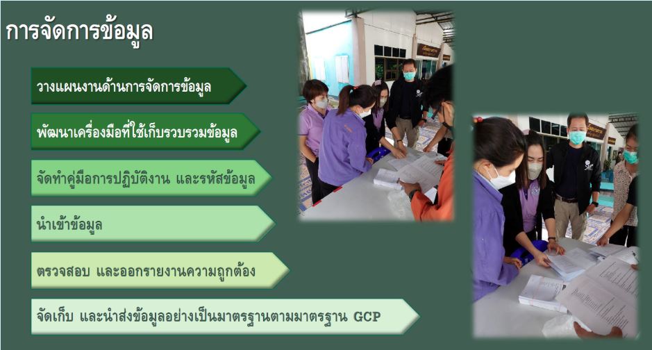 - จัดการระบบฐานข้อมูลของโครงการวิจัยตามมาตรฐาน GCP
